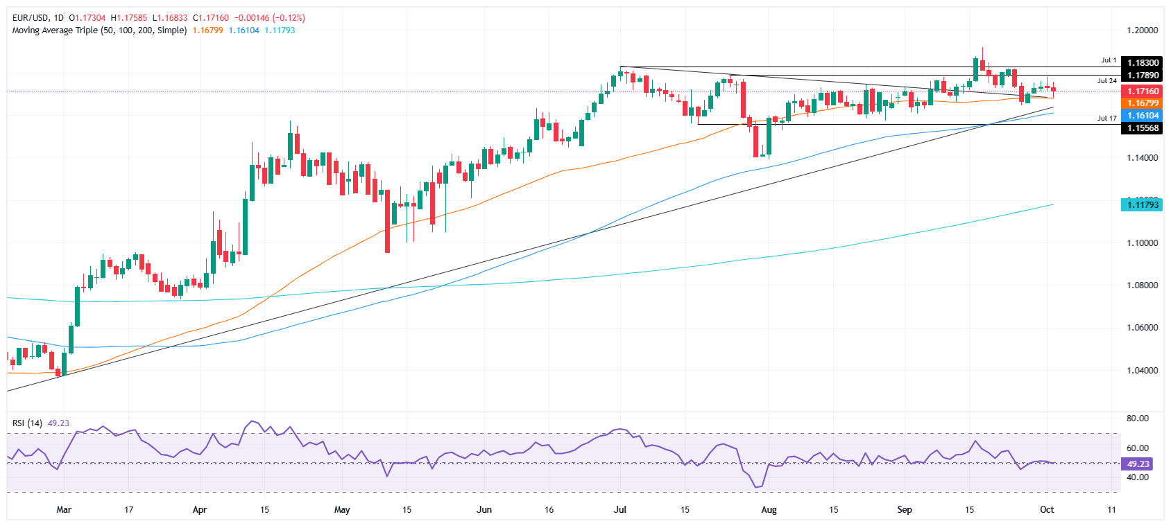 欧元/美元在周四北美交易时段保持稳定,但因美元走强而连续两天走低,因美国政府停摆和初请失业金人数等经济数据缺失。该货币对交易于1.1719,下降0.09%。