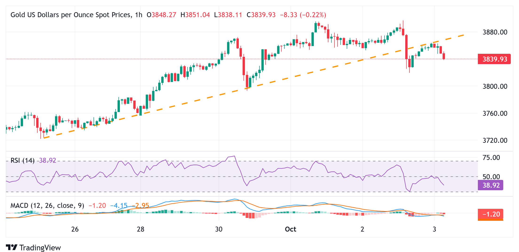03 10月 2025 20:10 黄金(黄金/美元)在欧洲时段的前半段触及新的日内高点,但在乐观的市场情绪中缺乏跟进买盘。美元(USD)难以延续前一天从一周低点的反弹,市场越来越接受美联储(Fed)今年将再降息两次的预期。这一因素,加上持续的地缘政治紧张局势,继续为贵金属提供顺风。