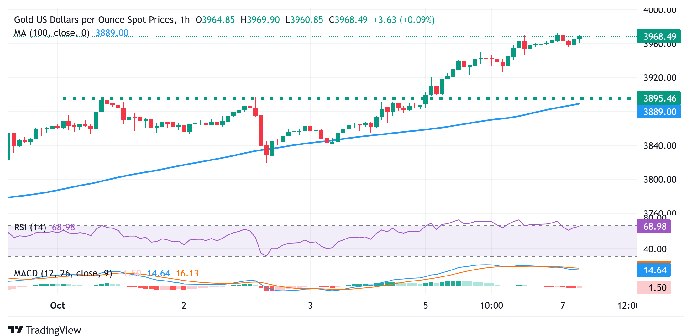 黄金(黄金/美元)从3940美元区域小幅反弹,即在欧洲时段上半段触及的日内低点,目前似乎已暂停其从历史高点的日内回撤下滑。