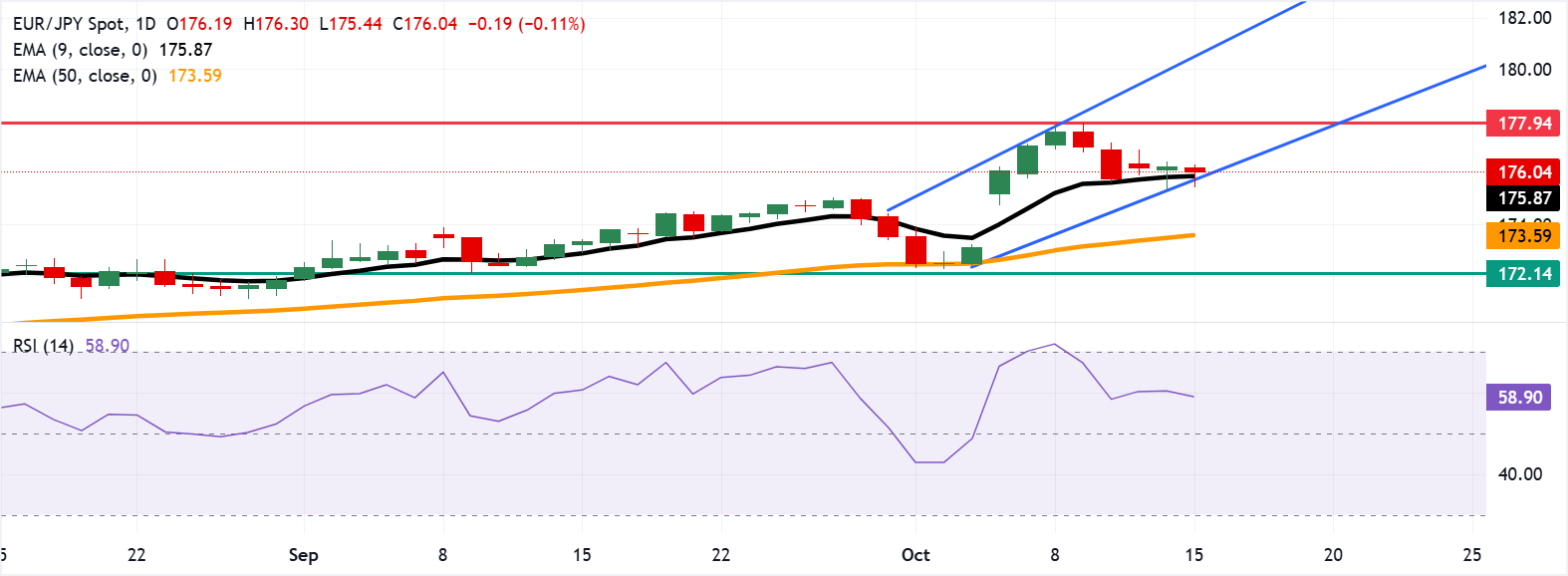 欧元/日元价格预测:在九日指数移动平均线支撑176.00附近维持下跌