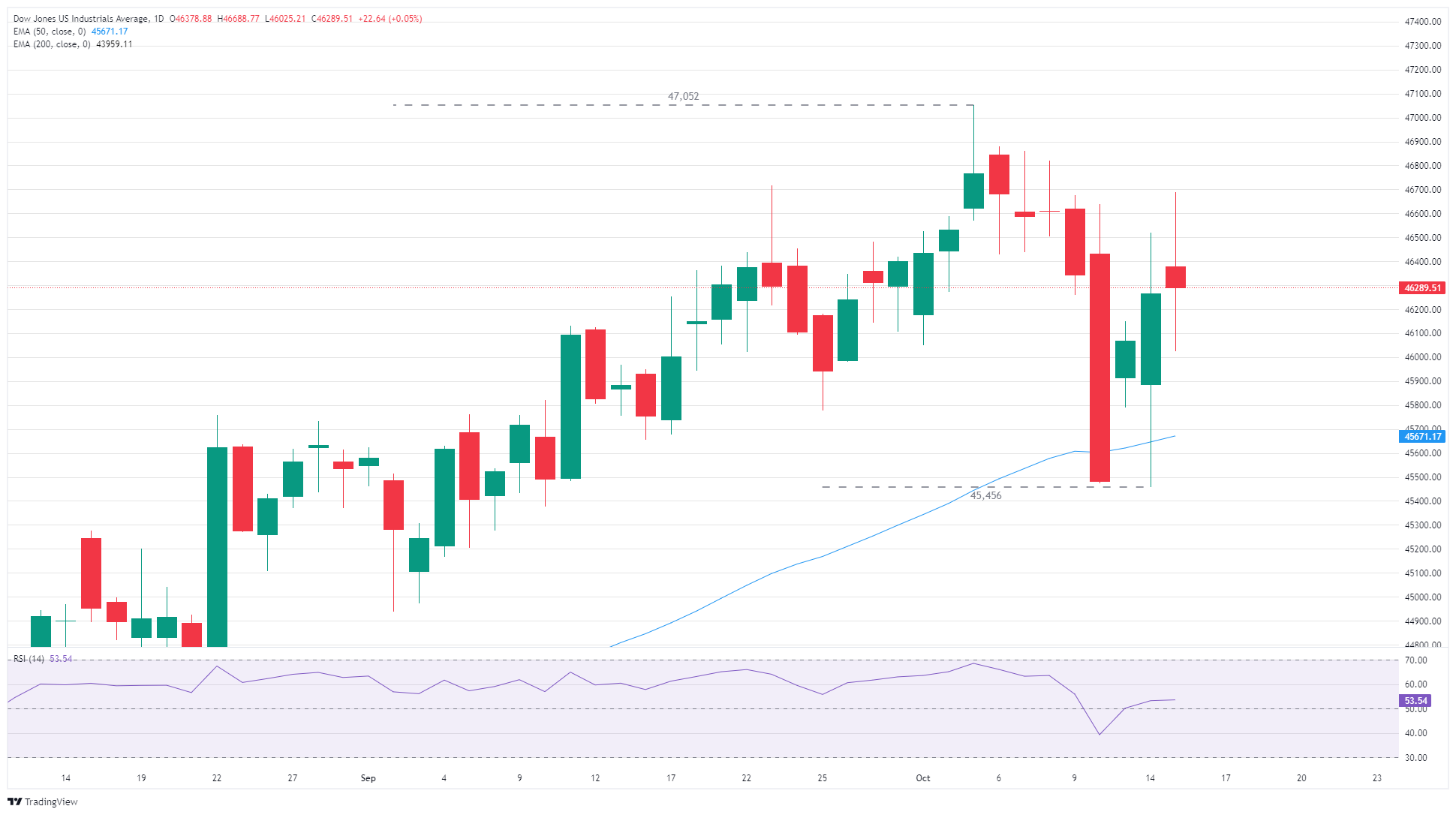 道琼斯工业平均指数(DJIA)在周三找到了高位空间,连续第二天出现回升流入,测试46,600以上的区域,最终收盘持平。