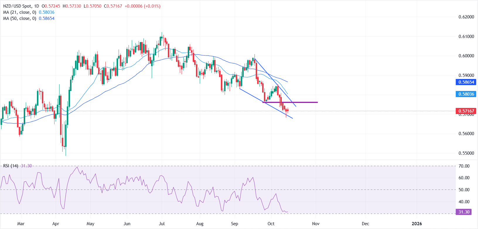 周三,纽元(NZD)在兑美元(USD)方面仍处于防守状态,连跌第七个交易日,尽管美元普遍走弱,投资者仍继续惩罚纽元。