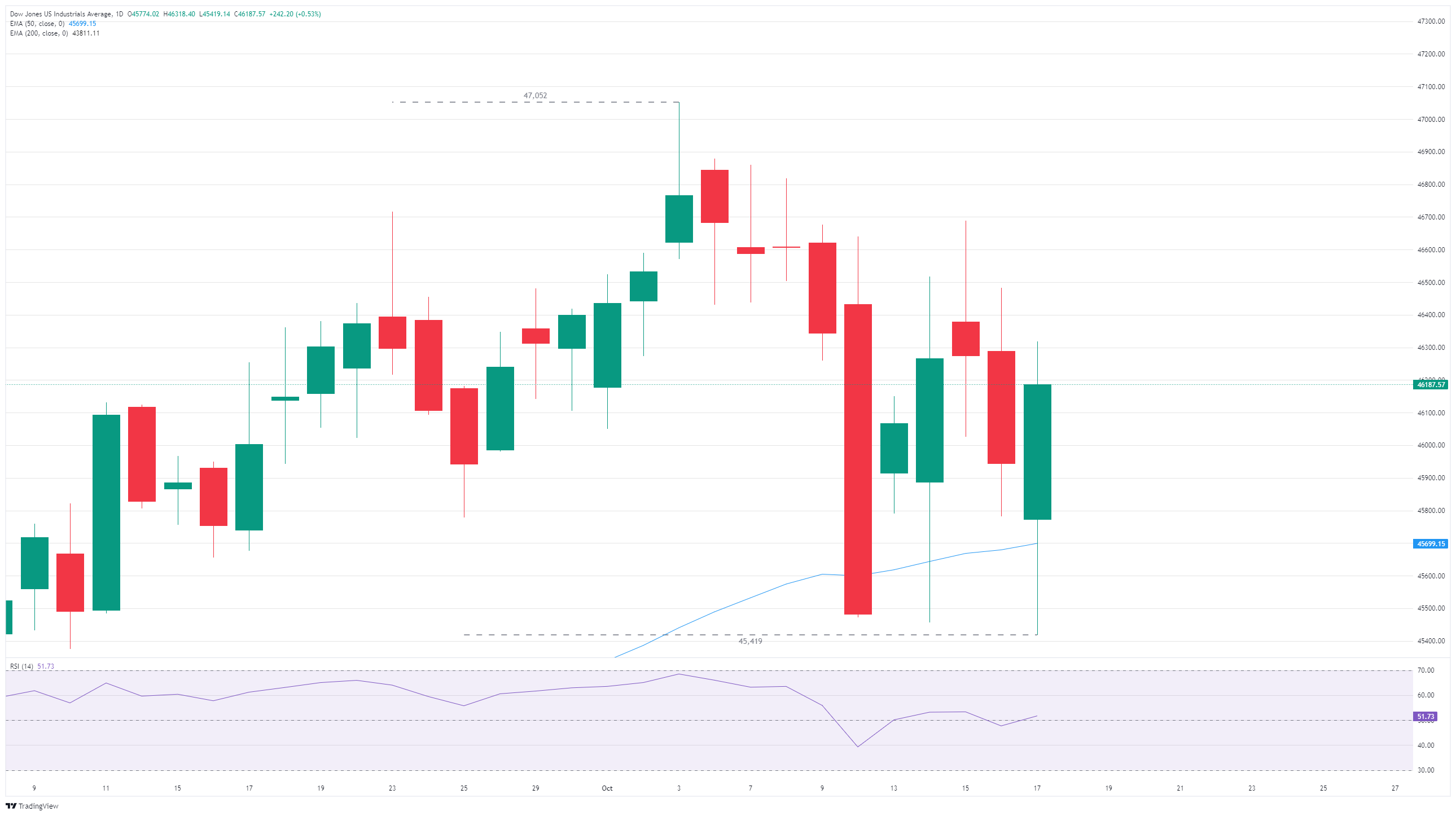 道琼斯工业平均指数(DJIA)在交易周结束时找到了短期支撑,从近期低点反弹约240点,并努力维持在关键移动平均线的高位。
