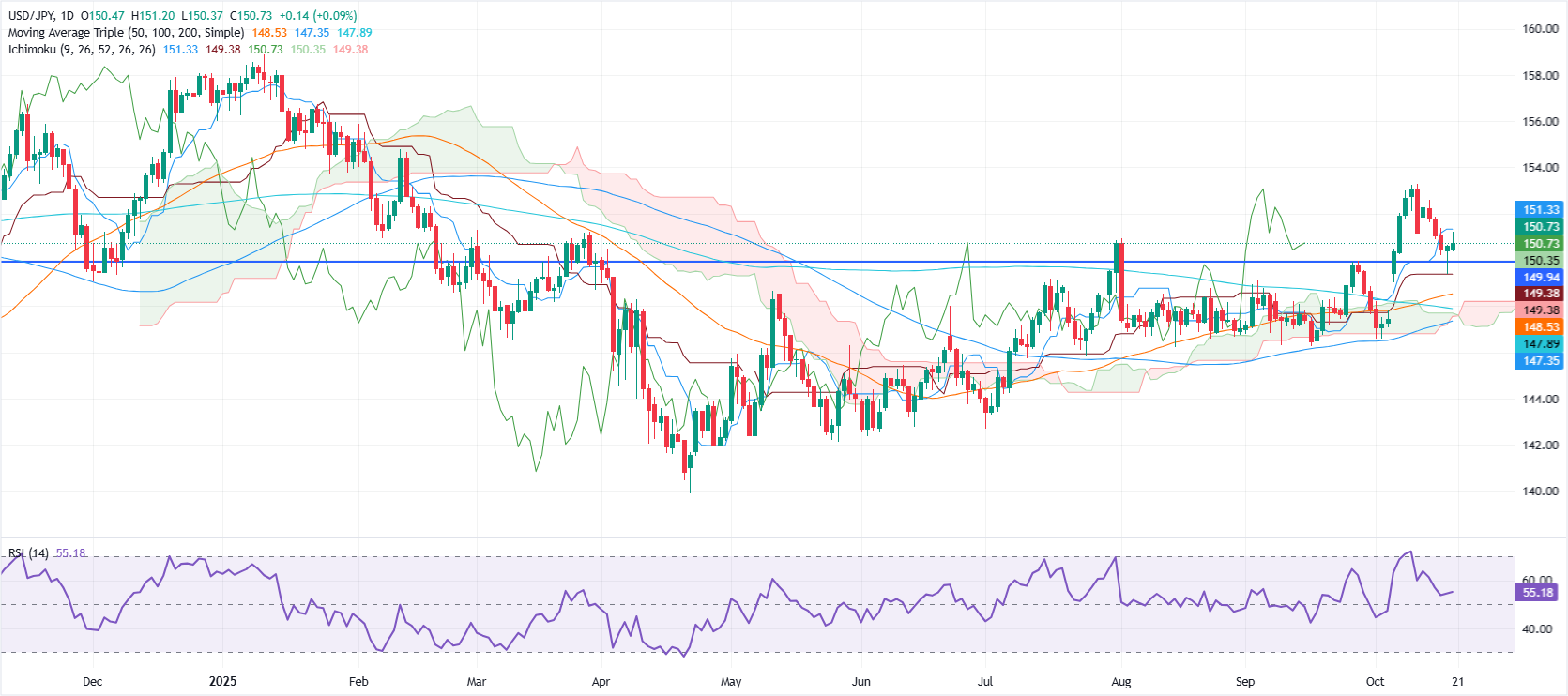 21 10月 2025 10:10 美元/日元在周一保持坚挺,徘徊在150.60附近,受美联储静默期和由于政府停摆导致缺乏美国数据的影响,市场风险偏好上升。美国总统唐纳德·特朗普缺乏市场影响力的言论,可能使该货币对维持在熟悉的水平。