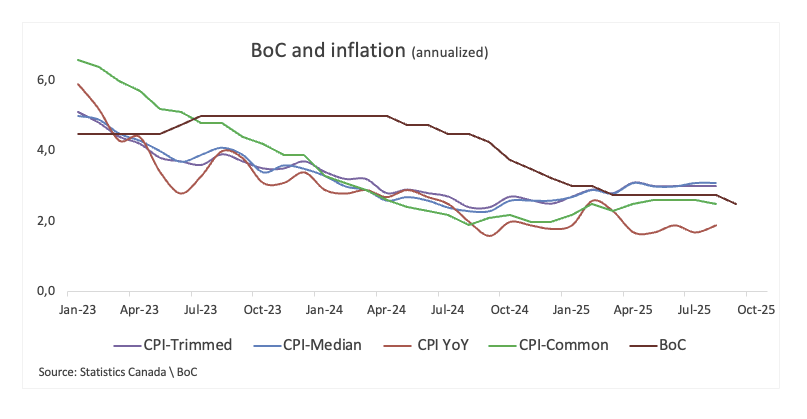 21 10月 2025 20:10 加拿大统计局将于周二发布九月份的通胀数据。这些数据将为加拿大央行(BoC)提供关于物价压力的新视角,因为央行正在权衡其利率的下一步行动。预计BoC将在10月29日的会议上将利率下调25个基点至2.25%。