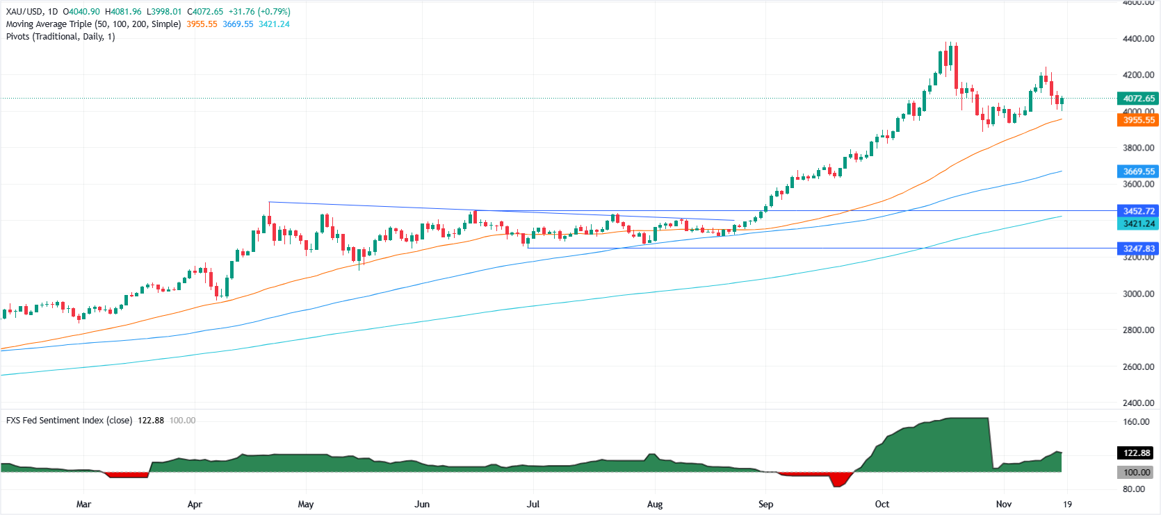 黄金(黄金/美元)在周二北美时段小幅上涨,美元也保持买盘,风险偏好因经济放缓的担忧而恶化。截至发稿时,黄金/美元交投于4058美元,上涨0.36%
