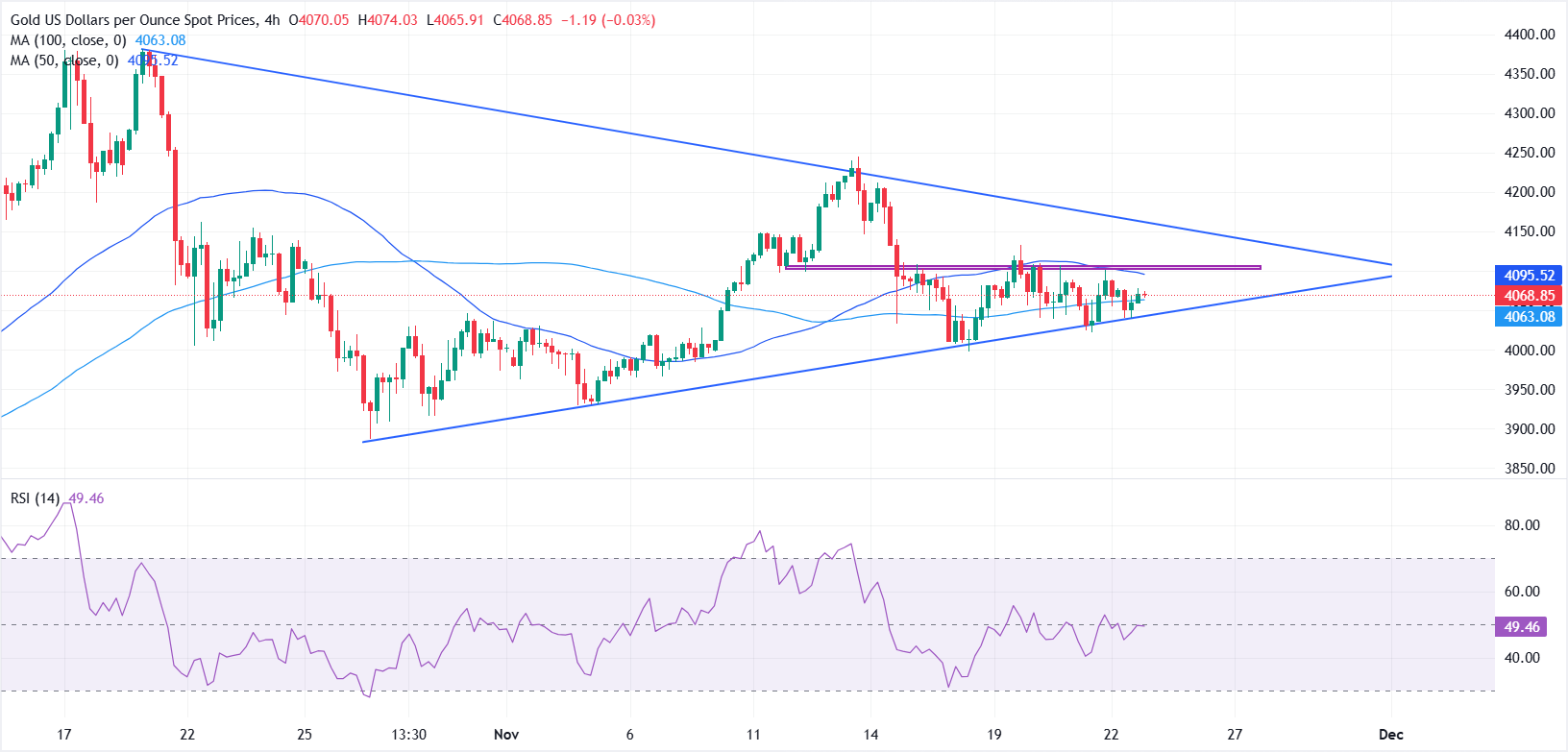 黄金(XAU/USD)周一略微走强,投资者在权衡不断变化的美联储(Fed)货币政策前景的同时,风险资产的情绪也在改善。截至发稿时,黄金/美元交易在4087美元附近,较日内低点约4040美元反弹,涨幅接近0.50%