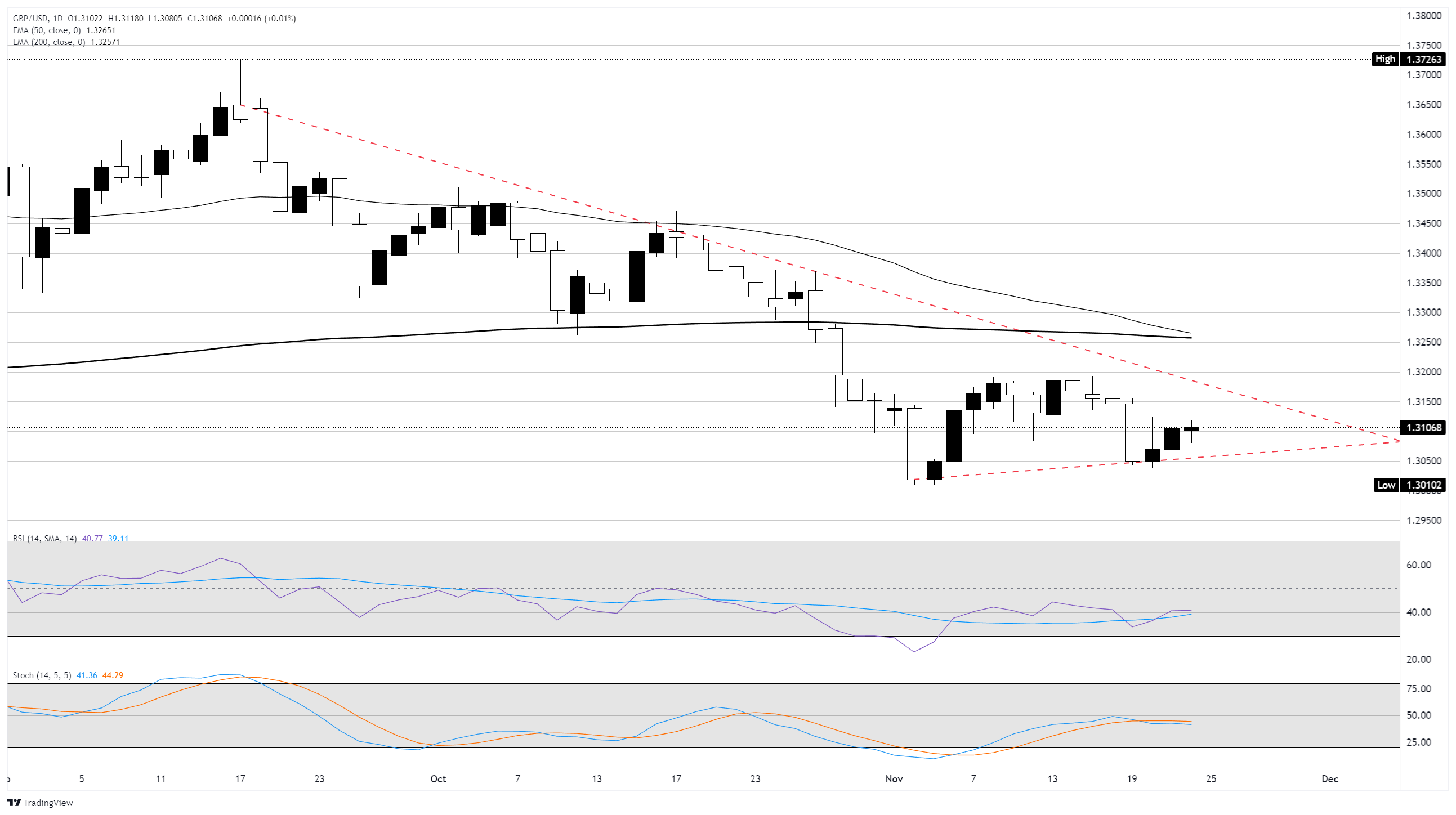 英镑/美元周一失去动力,徘徊在1.3100附近,投资者在应对极短的一周。