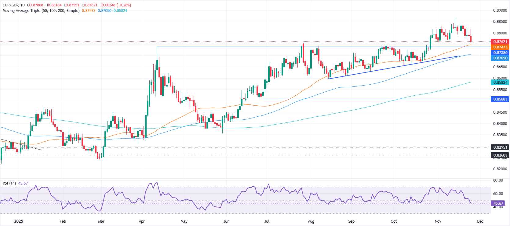 欧元/英镑在周三回落,此前英国财政大臣瑞秋-里夫斯(Rachel Reeves)公布的最新预算似乎受到投资者的好评,最初导致英镑(GBP)抛售,削减了早前的损失。撰写时,该货币对交易于0.8766,下跌0.24%