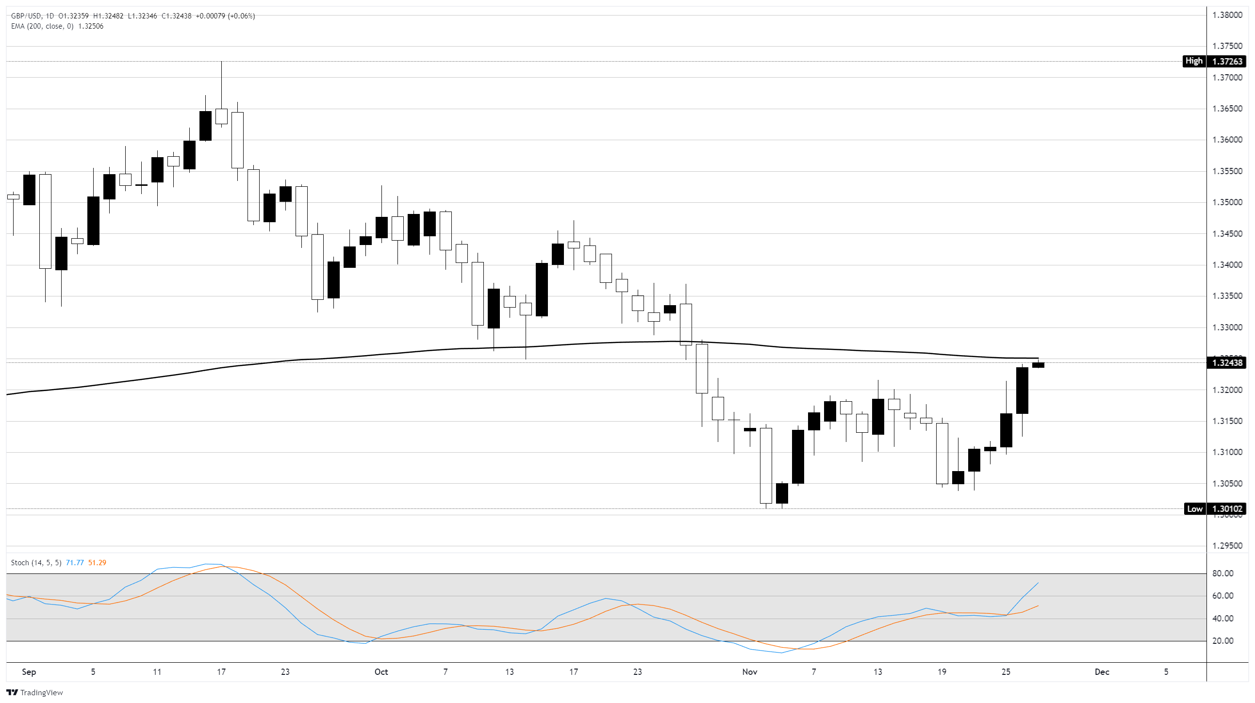 英镑/美元在周三加速上涨,日内再涨0.55%,突破1.3200关口。价格走势现在将挑战关键的长期移动均线,英镑多头将在本周后半段继续掌控局面。