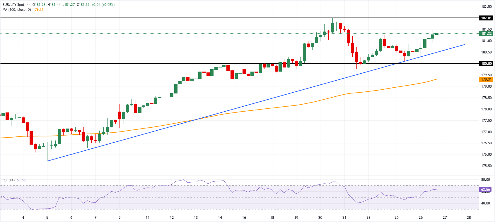 欧元/日元周三在181.30附近交易,当前上涨0.40%。该交叉受益于风险情绪的改善,投资者密切关注政治声明,暗示俄罗斯与乌克兰之间可能达成和平协议的进展。