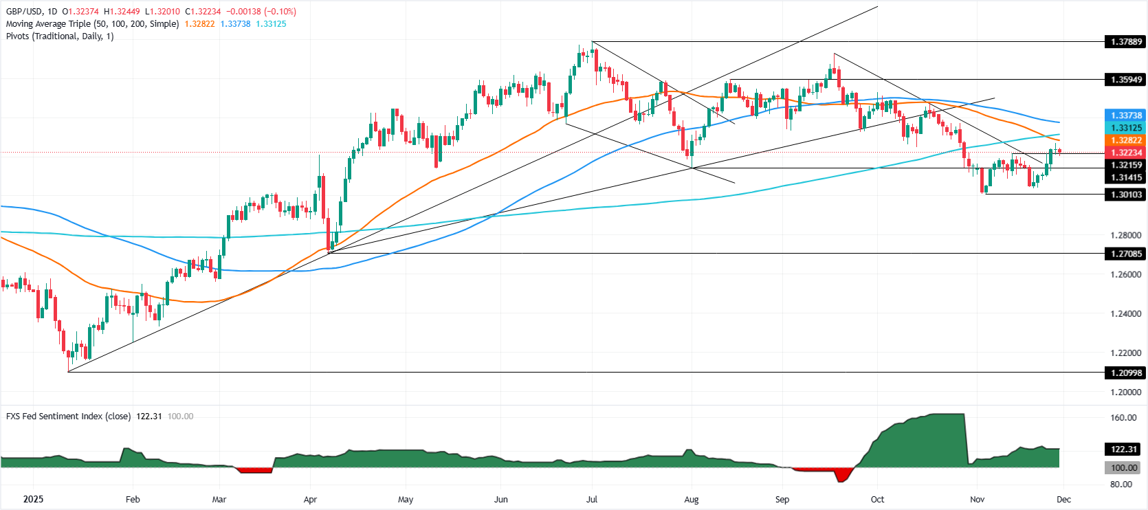 英镑/美元在周五的北美时段小幅下跌,尽管在本周末前录得近1%的涨幅,此前金融市场消化了秋季预算。该货币对在从日高1.3244回撤后,交投于1.3221。