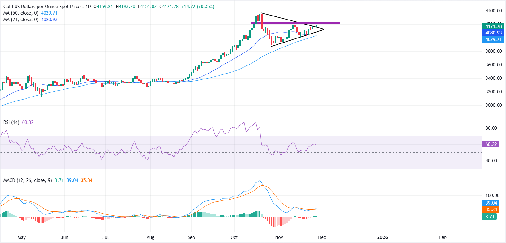 黄金(黄金/美元)在周五小幅上涨,此前由于CME交易中断引发的波动暂时将价格拉低。撰写时,黄金/美元的交易价格约为4200美元,该金属有望实现连续第四个月的上涨。