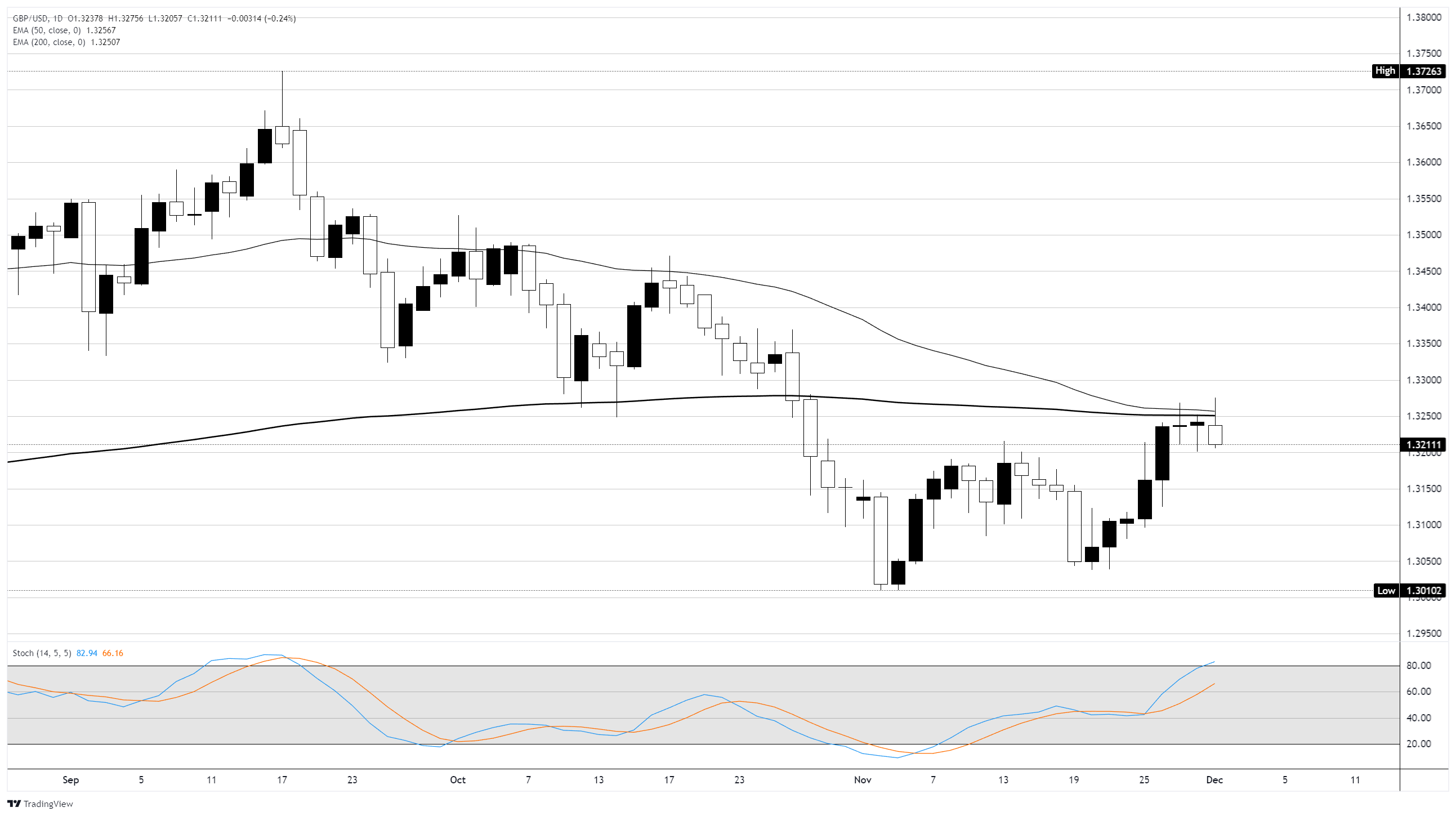 英镑/美元周一走弱,开启了12月的交易窗口,下降约0.25%,从一个关键的技术汇聚区域回落,除非全球资金流入美元(USD)发生逆转,否则这可能会激励对英镑(GBP)的进一步卖空。