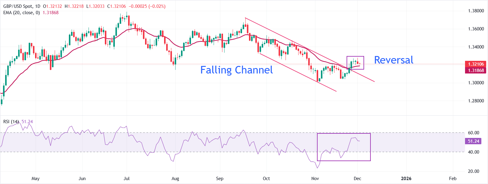 英镑(GBP)在周二欧洲交易时段兑美元(USD)下跌至接近1.3190。尽管美国11月份的ISM制造业采购经理人指数(PMI)数据疲软,英镑/美元货币对仍然下跌,因为美元延续了周一的反弹走势。