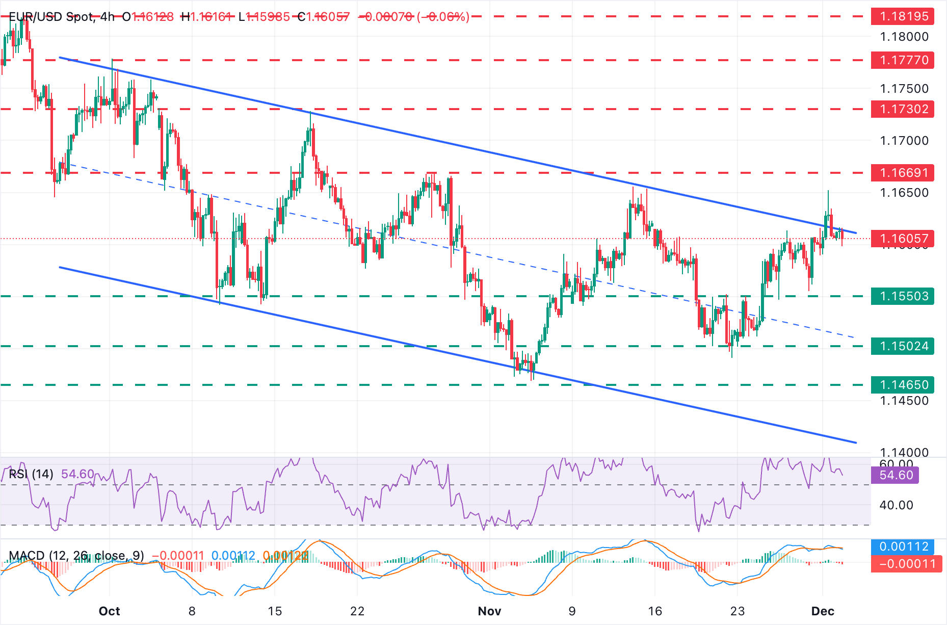 EUR/USD在发布欧元区通胀和失业数据后回吐之前的涨幅,并在日线图上转为下跌。该货币对在撰写时测试1.1600水平,周一在1.1650区域遭遇受阻。