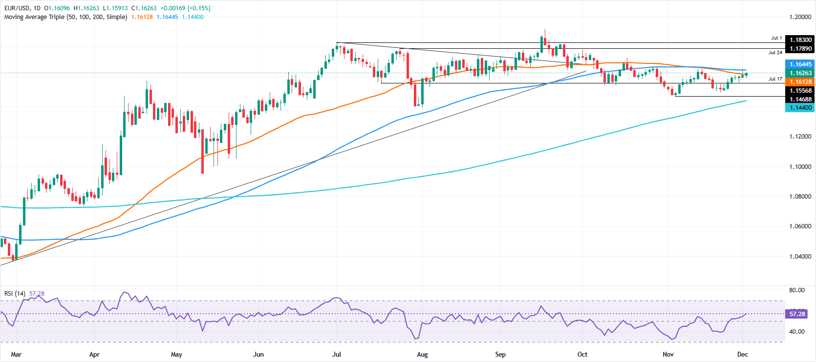 欧元/美元在周二北美时段小幅上涨0.12%,因风险偏好改善。对美联储在12月份再次降息的预期以及欧元区高企的通胀数据,支撑了这一共同货币的需求