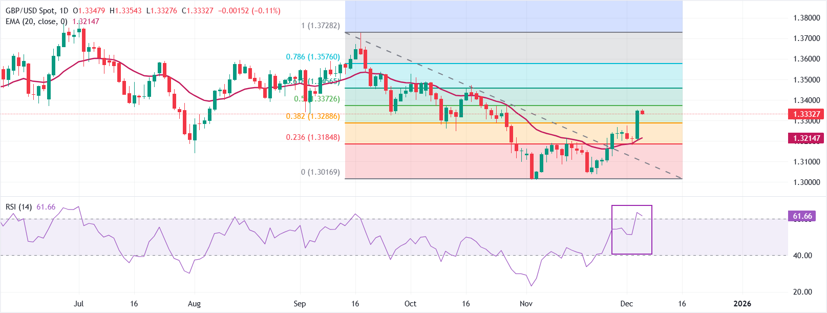 在周四的欧洲交易时段,英镑(GBP)在兑美元(USD)汇率中保持在一个多月来的高点附近,约为1.3350。由于美联储(Fed)鸽派预期加剧,美元处于弱势,英镑自上周预算公告以来持续表现强劲。