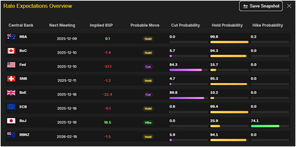 英镑/美元在周五恢复上涨趋势,削减了周四0.21%的跌幅,因为美元有所回升。美国的通胀数据保持稳定,降低了美联储在12月会议上降息的可能性,给美元施加了压力。撰写时,该货币对交易于1.3349,上涨0.19%