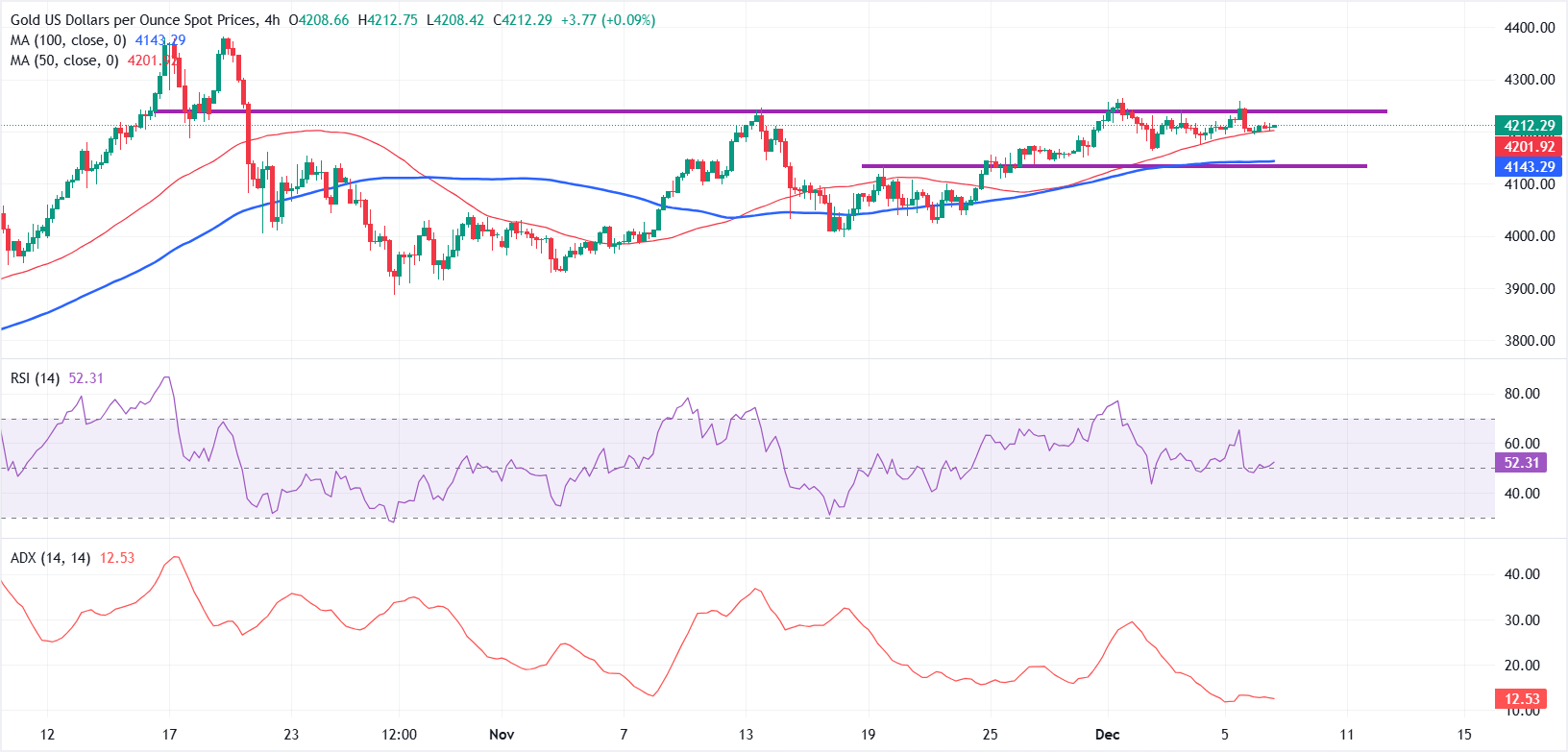 黄金(黄金/美元)在本周以平静的姿态开局,交易者在美联储(美联储)周三晚上的利率决议前不愿意采取新的头寸。截至发稿时,黄金/美元交易在4210美元左右,延续其在熟悉的一周区间内的盘整阶段。