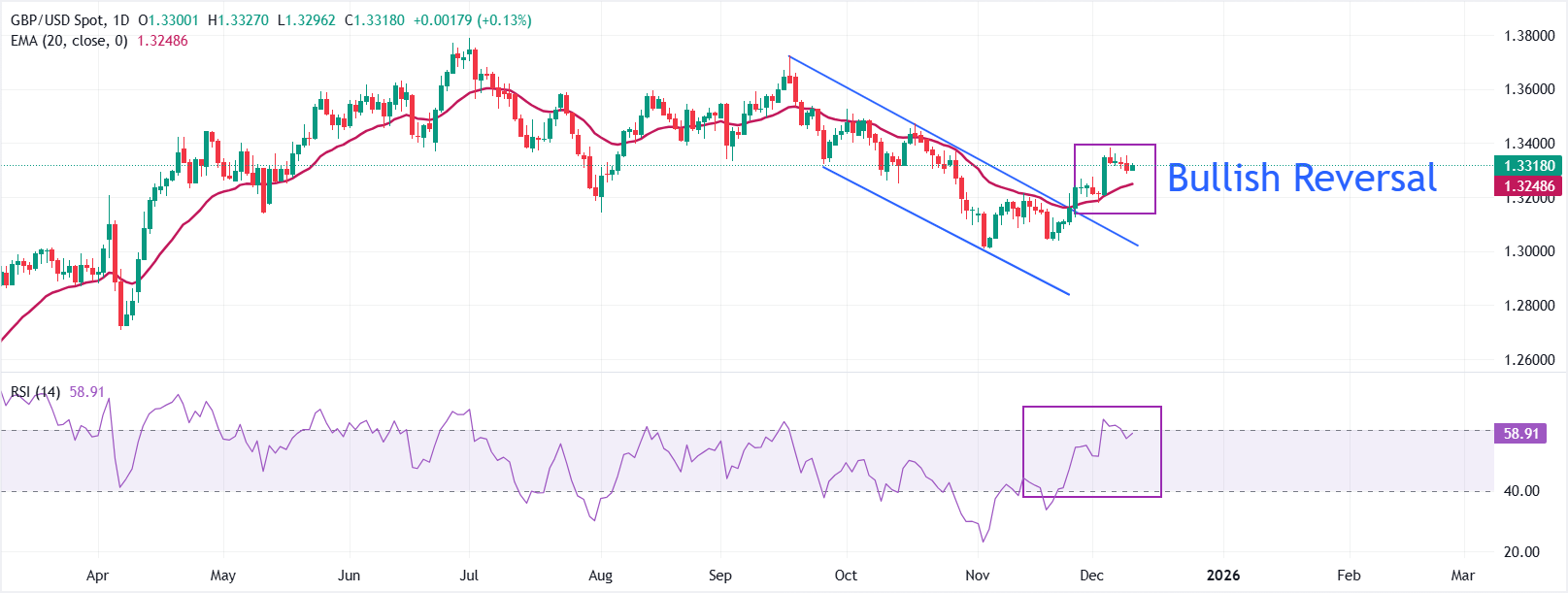 在周三的欧洲交易时段,英镑(GBP)兑美元(USD)上涨0.16%,接近1.3320。由于美元小幅下跌,GBP/USD 交易对上涨,市场在美联储(Fed)19:00 GMT的货币政策公告前保持谨慎。