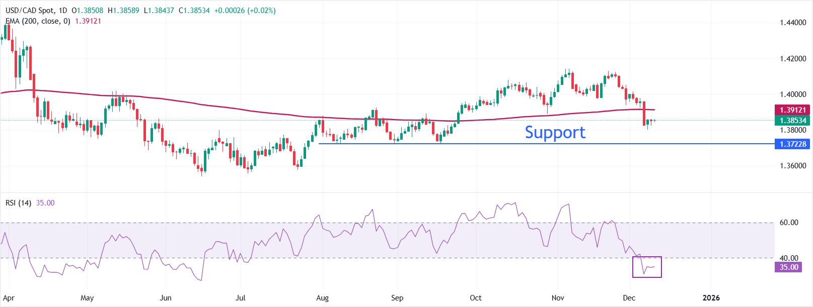 在周三的欧洲交易时段,美元/加元交易略微上涨,约为1.3850。由于投资者等待加拿大央行(BoC)和美联储(Fed)稍后公布的货币政策,该货币对正在盘整。