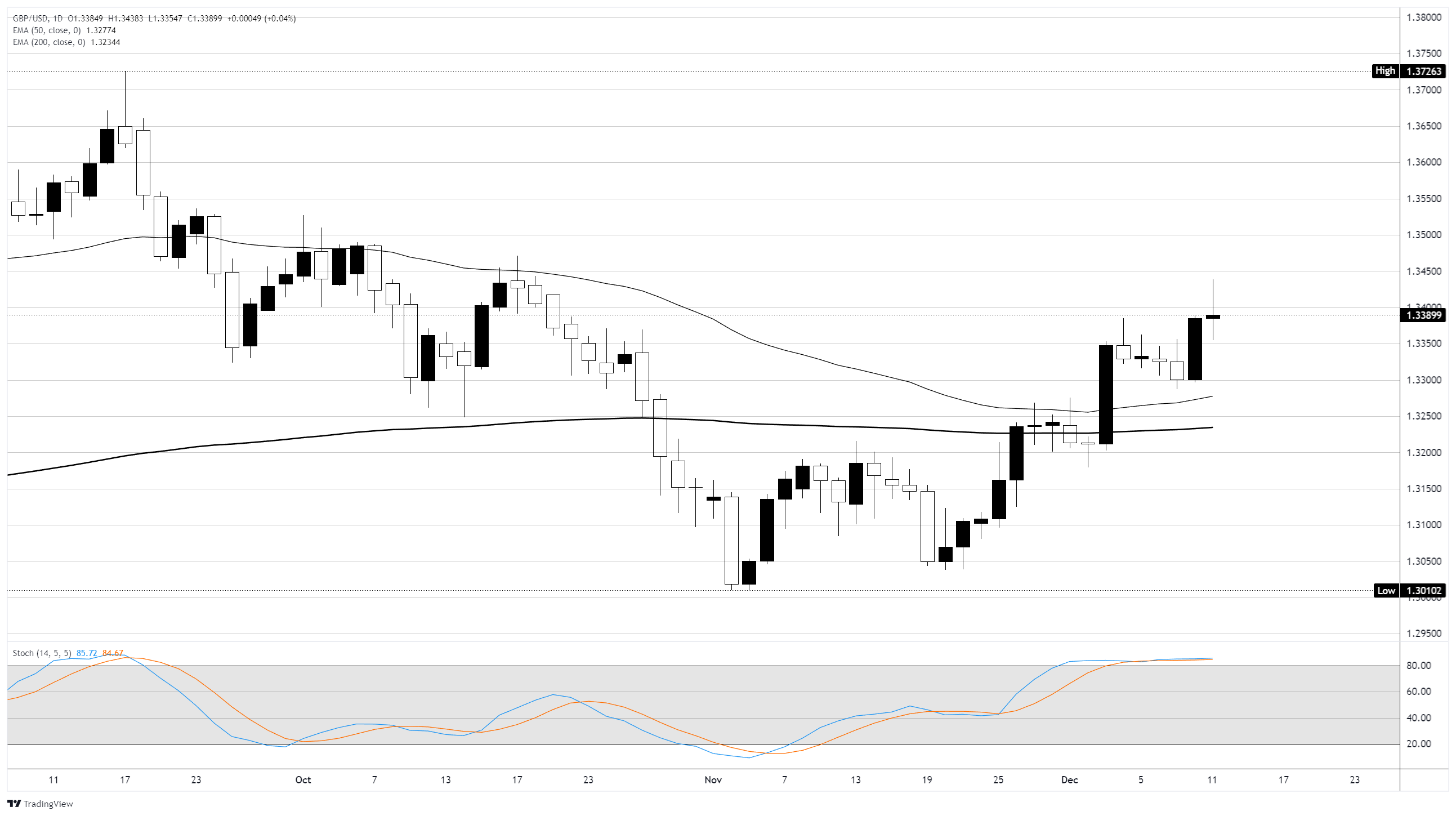 英镑/美元在本周尾声时稳固地保持在看涨区域,但周四英镑买家在1.3400关口遇到了技术阻力位