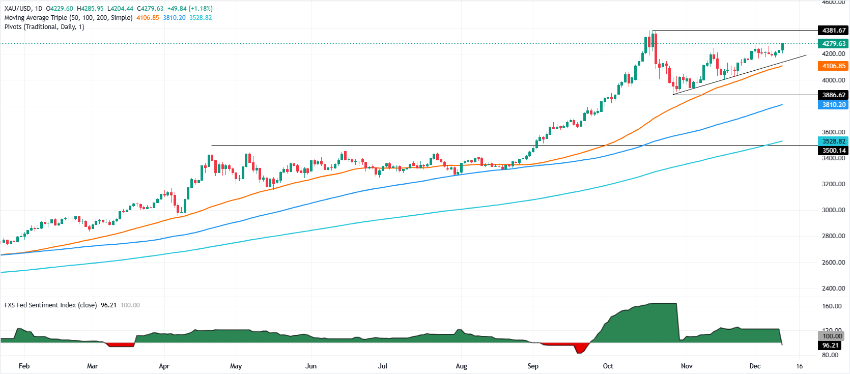 黄金(黄金/美元)在周四飙升,此前美联储(Fed)在周三如预期降息,尽管暗示放缓宽松周期,但这并未成为贵金属反弹的借口