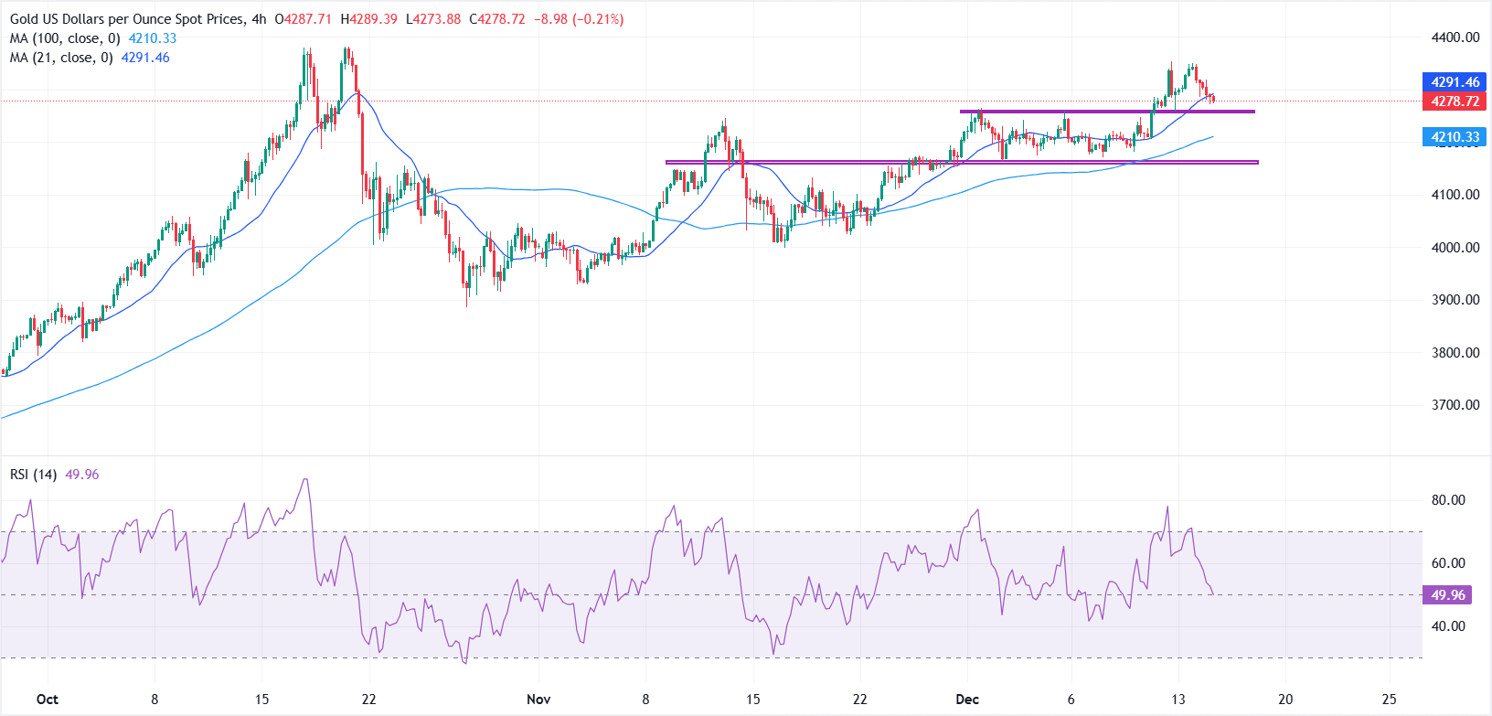 周二,黄金(黄金/美元)走势疲软,交易商在美国经济数据日程繁重之前削减风险敞口,这些数据可能会重塑市场对美联储(Fed)货币政策路径到2026年的预期