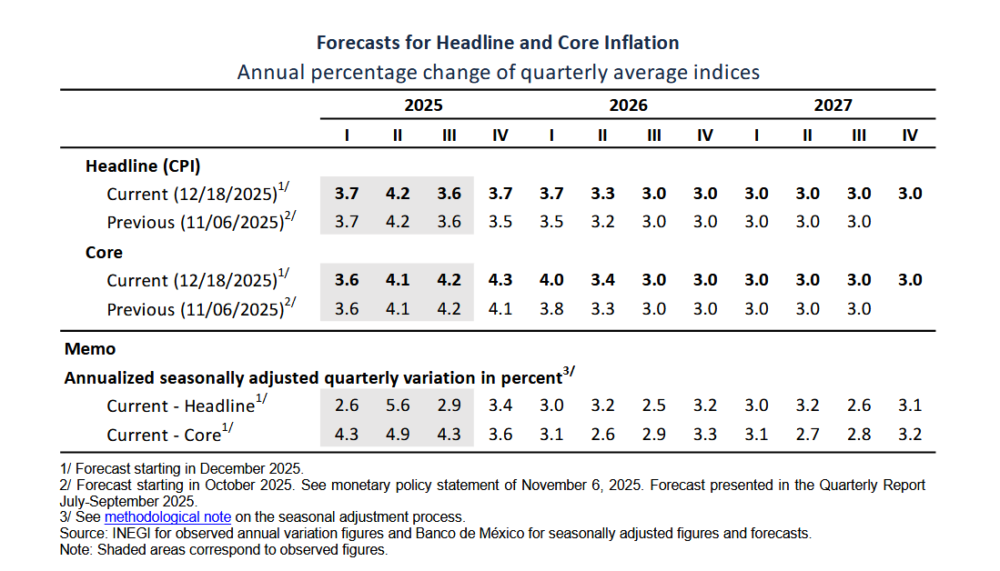 墨西哥银行(Banxico)在其12月货币政策会议上如预期将利率下调25个基点,投票结果为4-1,副行长乔纳森·希特(Jonathan Heat)继续在董事会中持不同意见,他希望维持主要参考利率不变