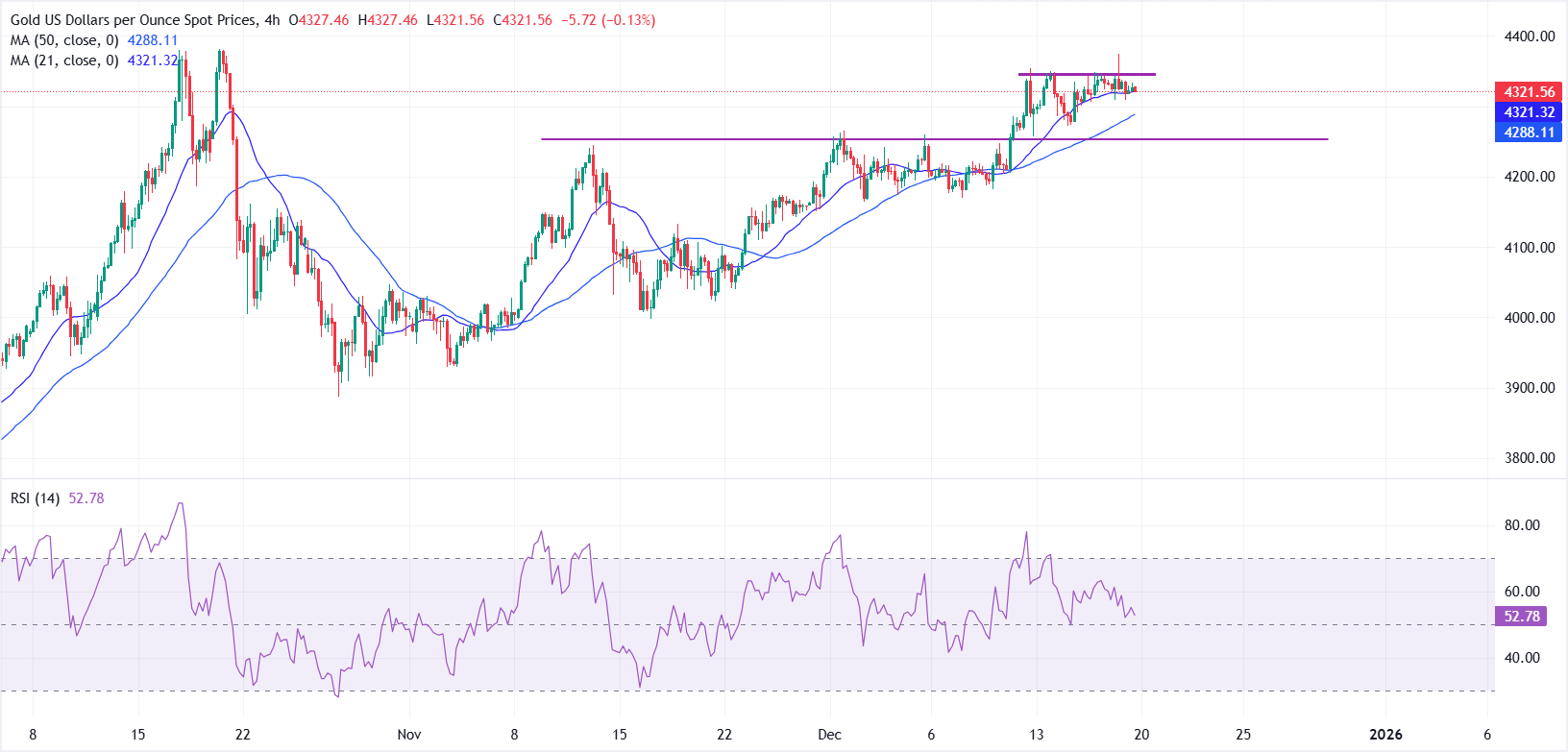 黄金(XAU/USD)在周五的波动有限,强势美元(USD)限制了上涨动能。撰写时,XAU/USD徘徊在4321美元附近,保持在4309美元的日低之上。