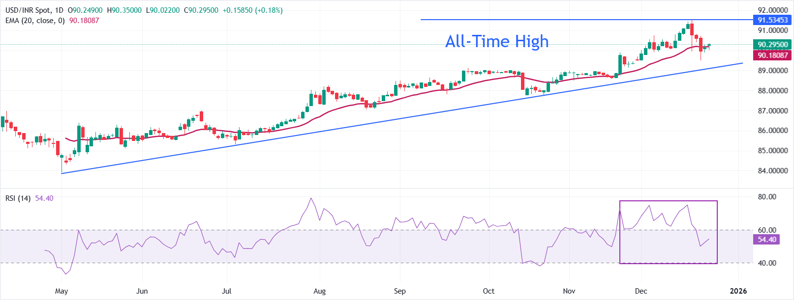 印度卢比(INR)在周二继续努力延续上周对美元(USD)的反转走势。美元/印度卢比货币对在创下89.25附近的三周新低后重新获得支撑,因为印度进口商抓住回调机会以有吸引力的价格增加美元。