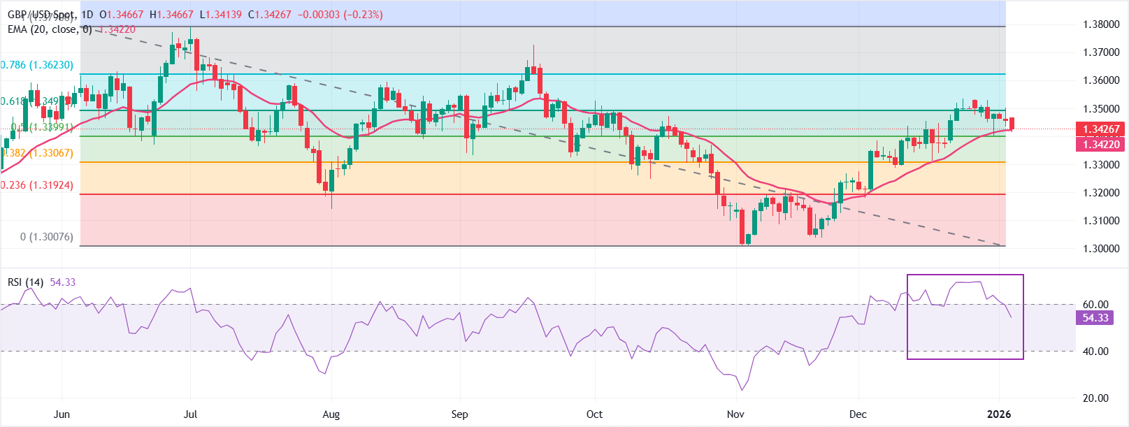 英镑(GBP)表现优于其风险货币同行,但在周初面临对避险货币的卖压。由于市场预期英国央行(BoE)将在2026年采取渐进的货币宽松周期,英镑有所上涨