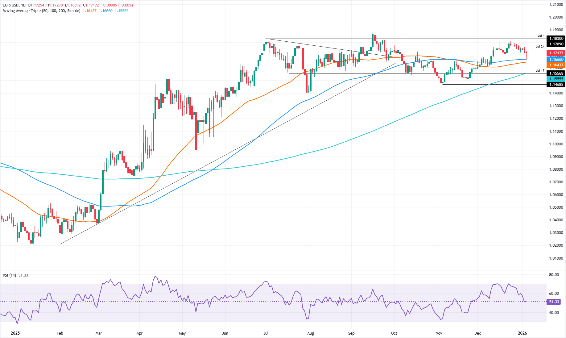 尽管在1.1710附近触及日低,欧元/美元在周一恢复了一些失地,最终以约1.1718收盘,持平,因风险偏好改善,尽管地缘政治紧张局势上升。