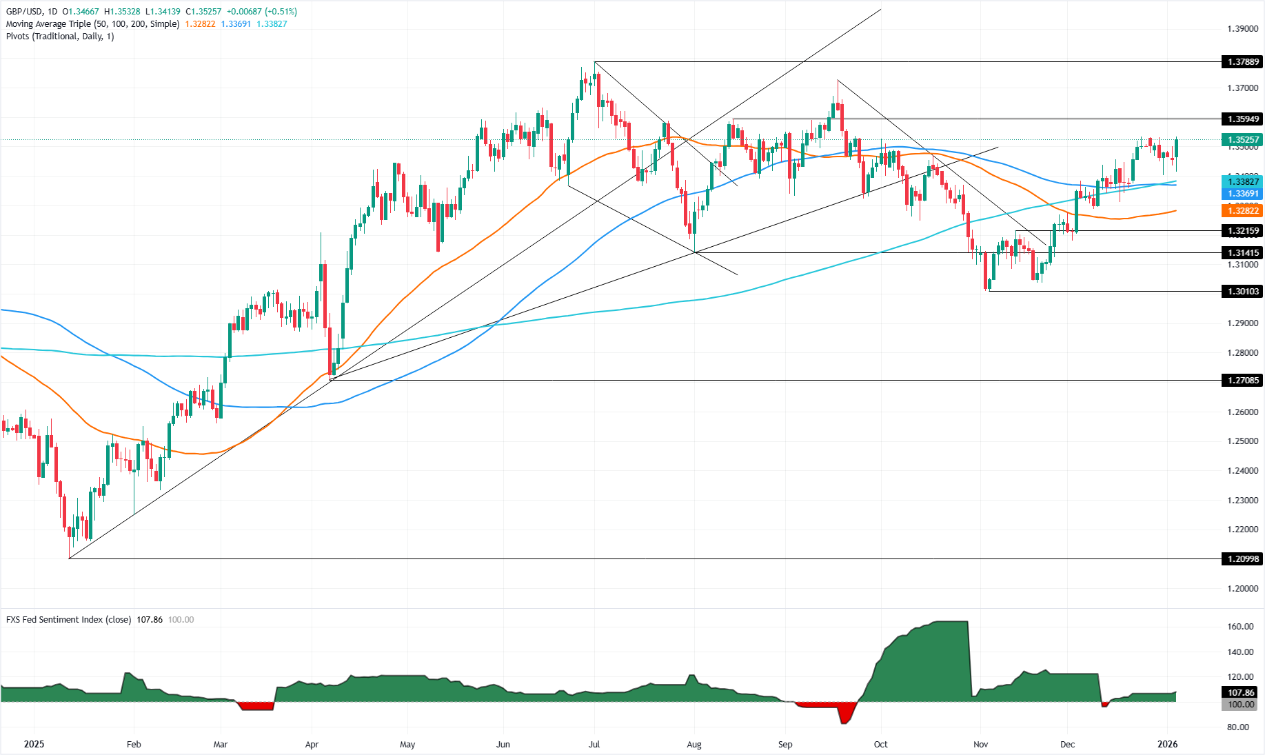 英镑/美元周一上涨超过0.29%,因美元(USD)抹去了因周末地缘政治发展而导致的避险情绪所带来的早期涨幅。该货币对在触及日低1.3413后,现交易于1.3500。