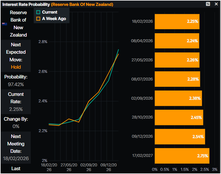 周三,纽储行(RBNZ)将公布最新的货币政策会议决策,至今,货币市场根据Prime Market Terminal利率概率工具已定价99%的可能性维持隔夜现金利率(OCR)不变,保持在2.25%