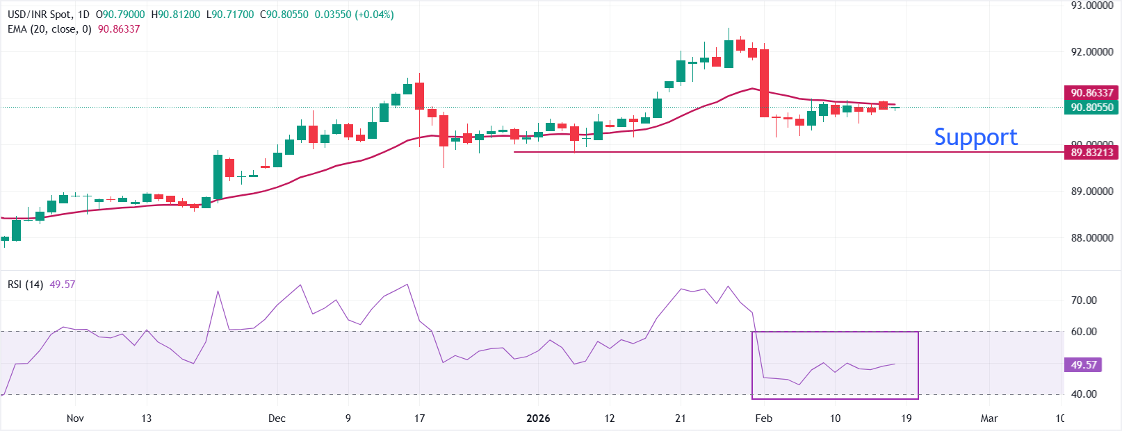 印度卢比(INR)周三对美元(USD)几乎持平。美元/印度卢比货币对预计将在当前水平附近波动,约为90.80,投资者在等待联邦公开市场委员会(FOMC)会议纪要的发布,时间为GMT19:00。
