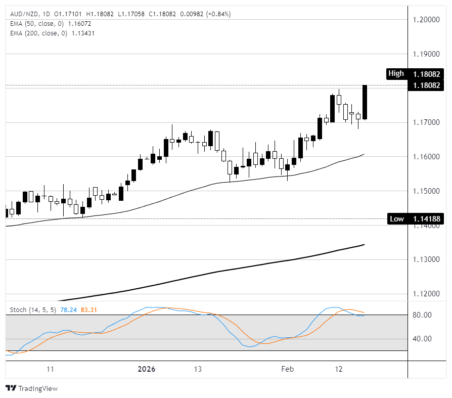 澳元/纽元交叉在周三大幅上涨,因为纽储行(RBNZ)的鸽派维持引发了新西兰元(NZD)的广泛抛售,而澳大利亚元(AUD)则受到澳储行(RBA)最近鹰派立场的支撑