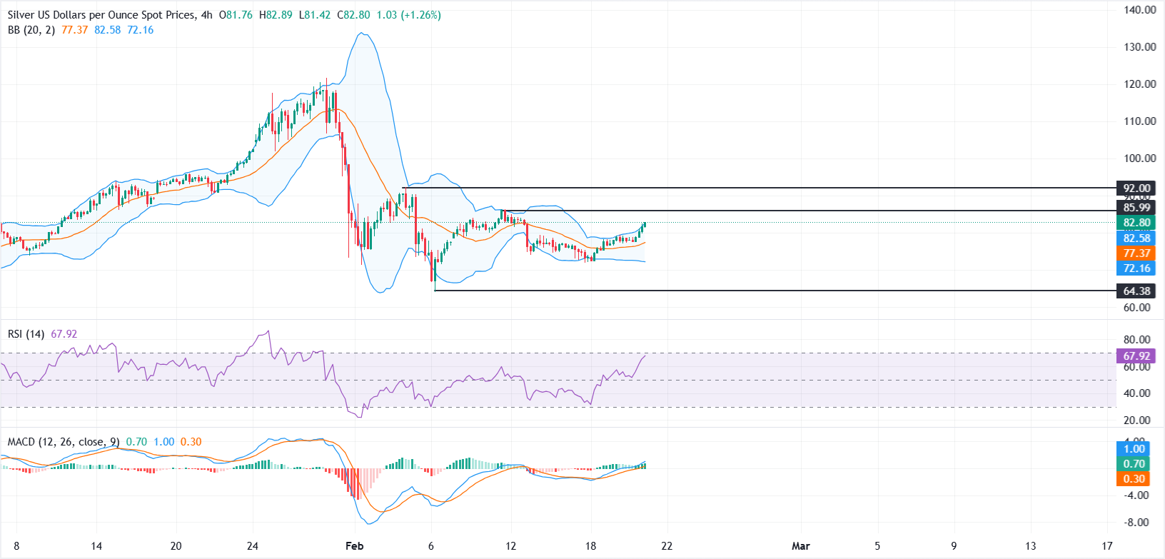 白银(白银/美元)在周五延续近期反弹,价格连续第三天上涨,持续的地缘政治风险推动了避险资金流入。截至发稿时,XAG/USD交投于82.80美元附近,预计本周将录得超过5%的涨幅