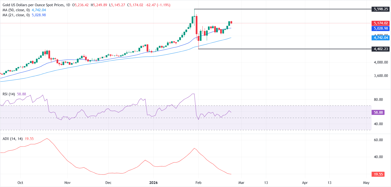 黄金(黄金/美元)周二小幅下跌,因美元(USD)走强抑制了对贵金属的需求,尽管地缘政治和经济风险仍然受到关注。撰写时,黄金/美元交投于5175美元附近,日内下跌约1.20%。