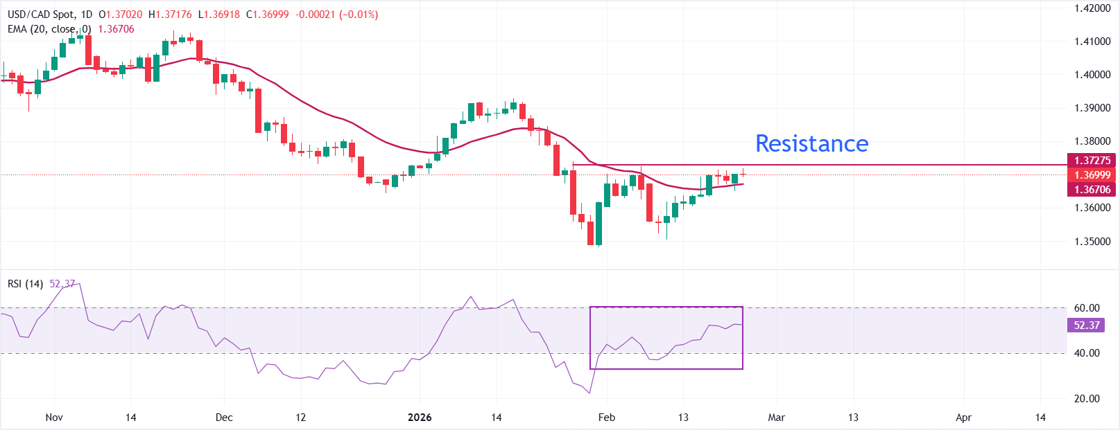 美元/加元货币对在周二欧洲早盘时段在1.3700附近保持周涨幅。由于美元(USD)延续其反弹走势,美元/加元货币对表现坚挺,美元指数(DXY)在记者发稿时延续反弹至近97.80。