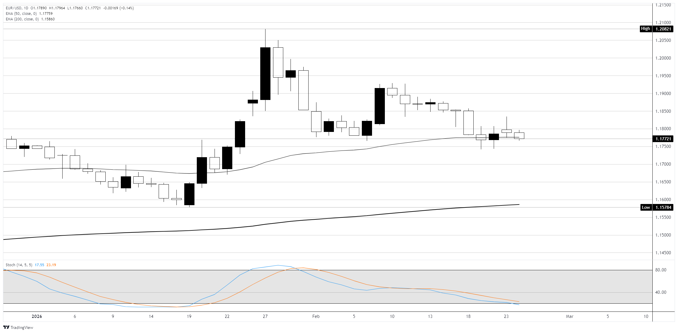 周二,欧元在1.1775水平附近交易,此前从上周的一个月低点反弹。