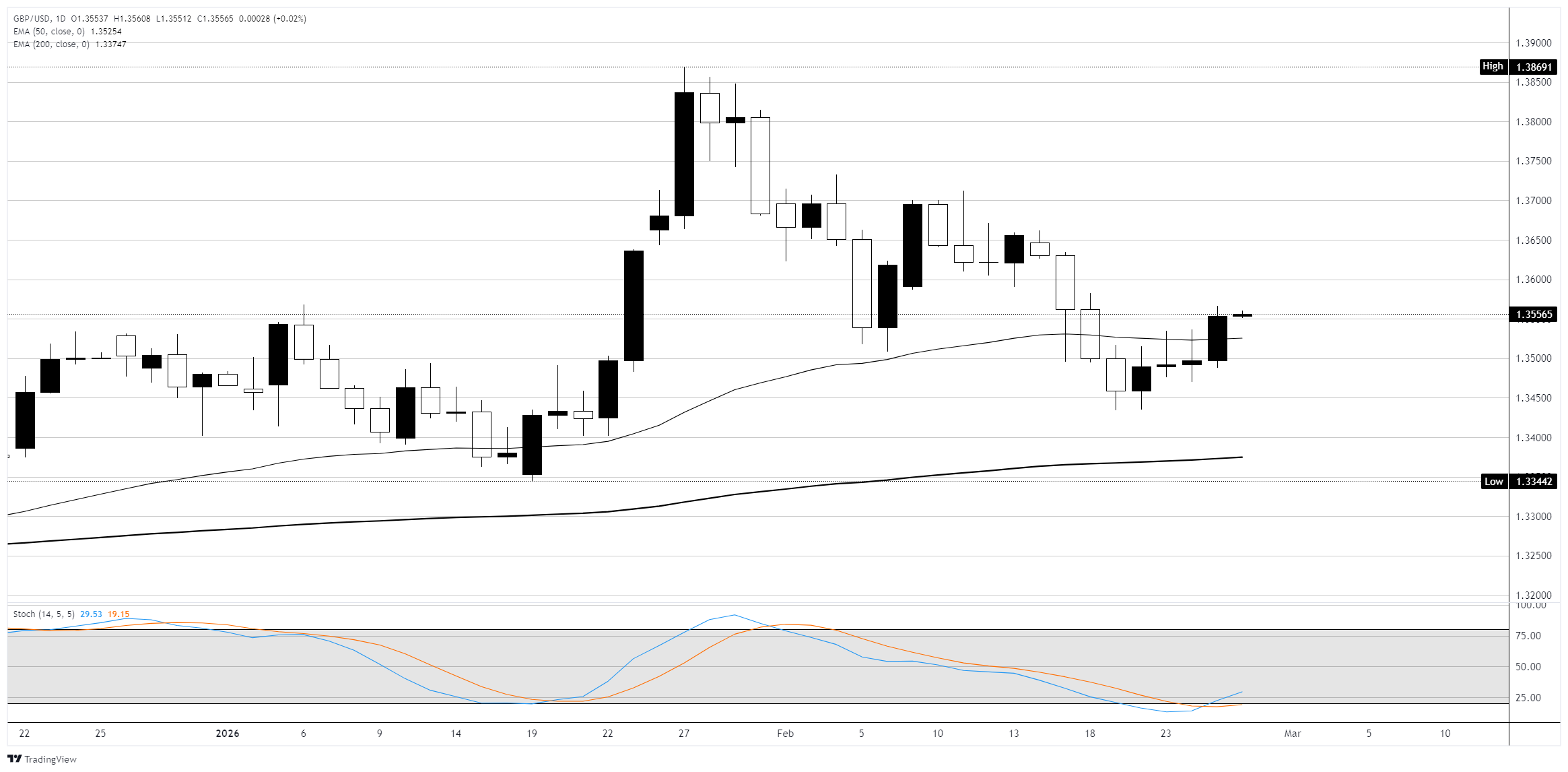 英镑/美元周三上涨 0.42%,在受英国通胀数据低于预期和美元普遍走弱的影响下,回升至 1.3600 附近。