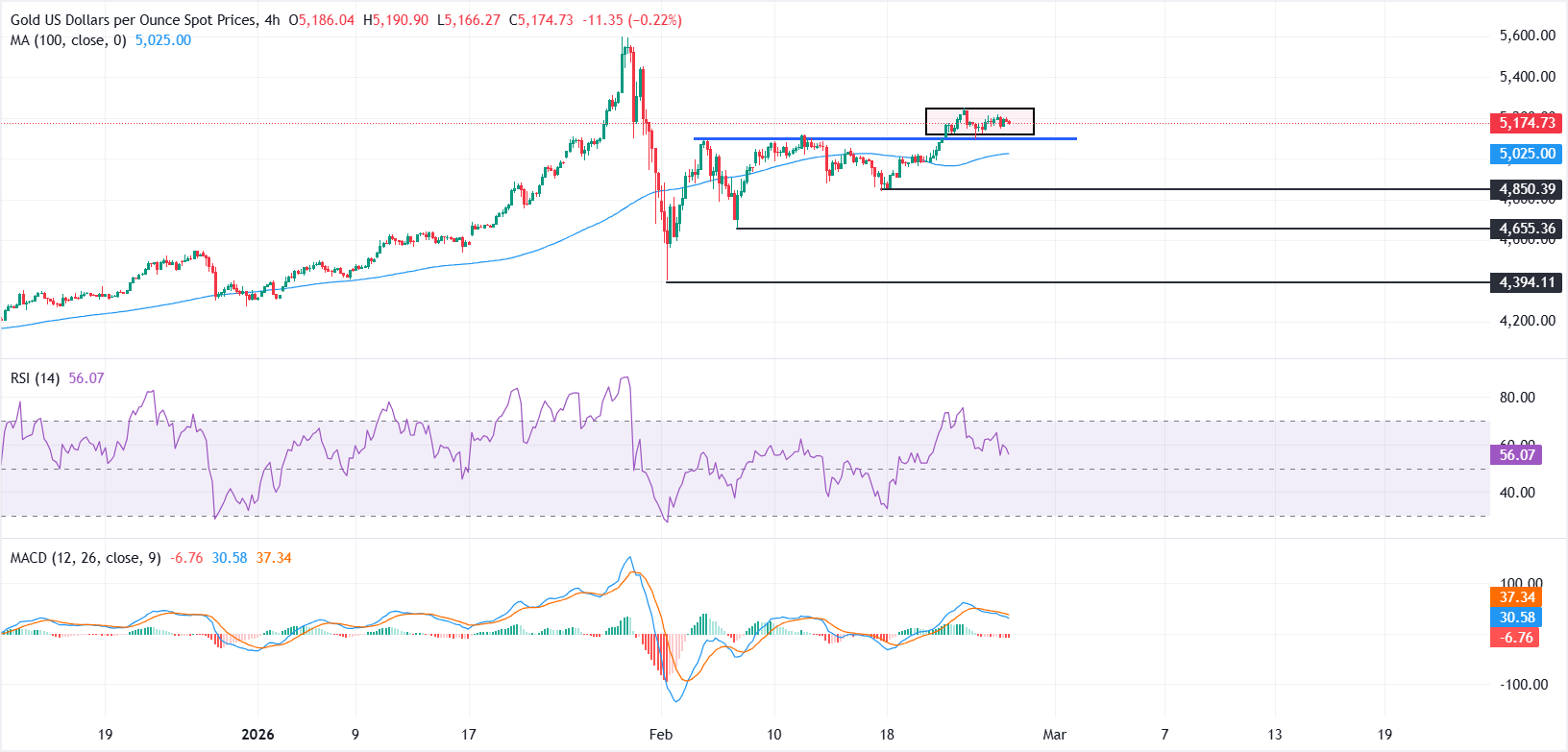 黄金(黄金/美元)周四走势略有上行偏向,但仍受限于本周的交易区间,因为市场在关键地缘政治事件前保持谨慎。截至发稿时,黄金/美元交投于5174美元,尽管多头在5200美元水平上方维持涨幅面临困难。