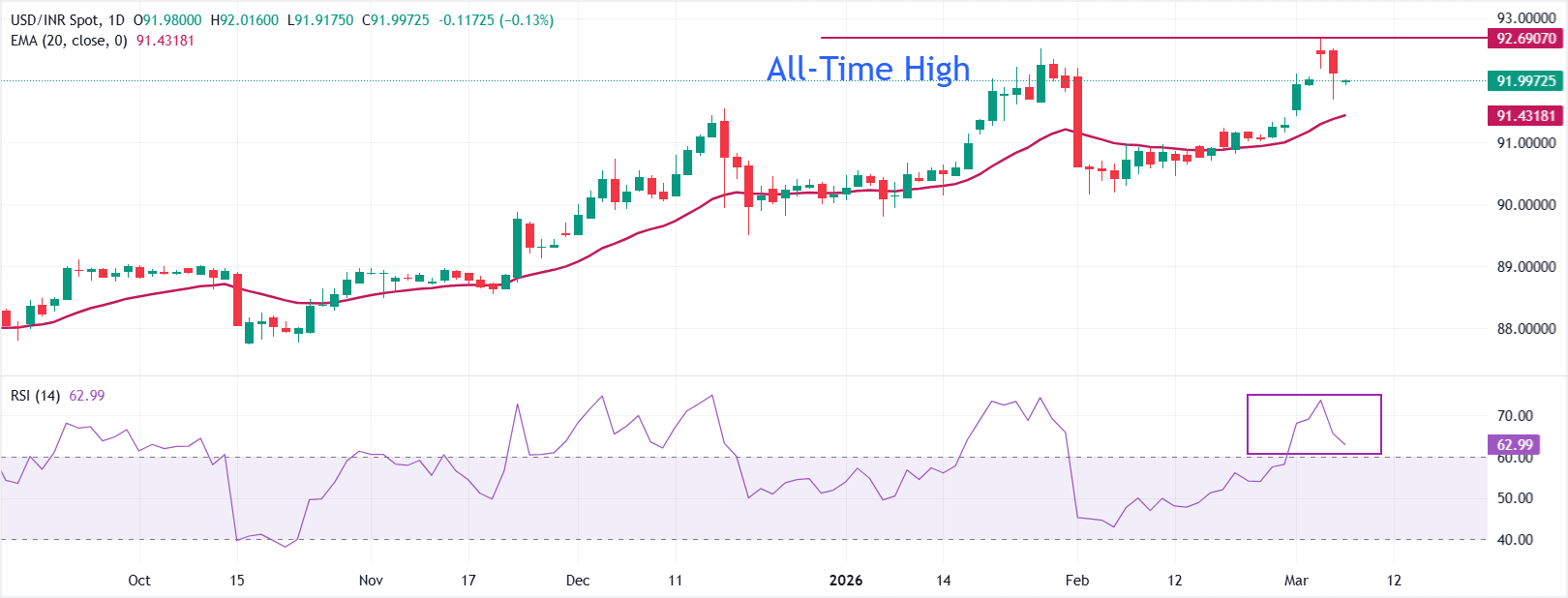 印度卢比(INR)在周五印度下午交易时段对美元(USD)走高。美元/印度卢比汇率跌至接近92.00,因为印度卢比获得了印度储备银行(RBI)在外汇市场干预以应对周四过度单边波动所提供的支撑。