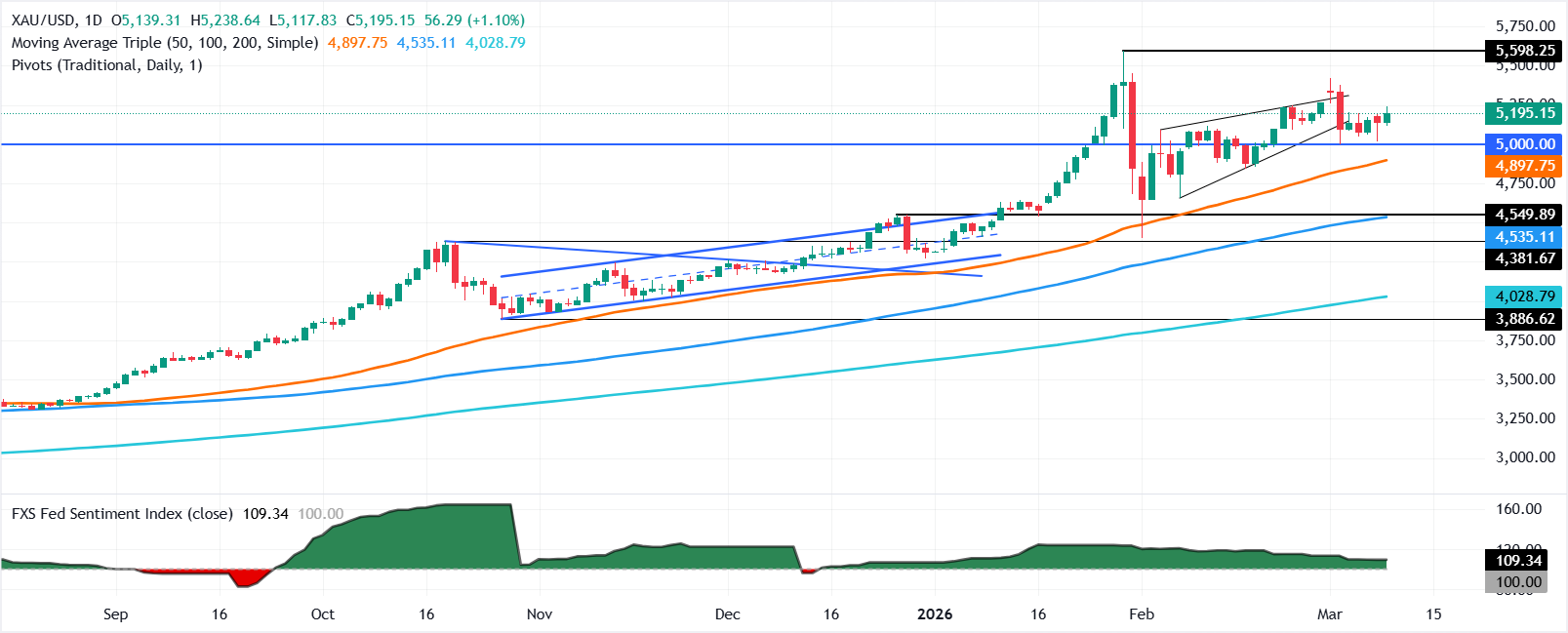 黄金价格(XAU/USD)在周二上涨,因美元(USD)回落,油价走低,反映出美元与原油的紧密关联。在撰写本文时,黄金/美元交投于5187美元,上涨超过0.50%