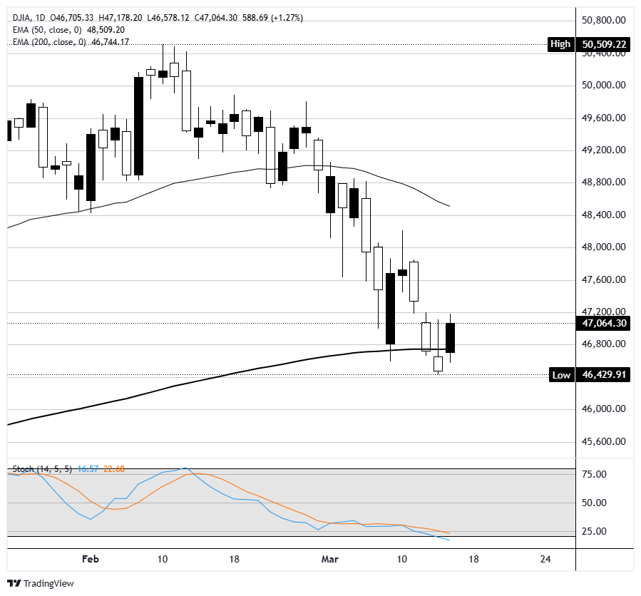 道琼斯工业平均指数(DJIA)周一上涨约1.2%,重新回到47,000点以上,此前周五收盘时接近46,500点。标准普尔500指数上涨超过1%,回升至6,700点附近,而纳斯达克综合指数上涨超过1.2%,收于22,400点附近