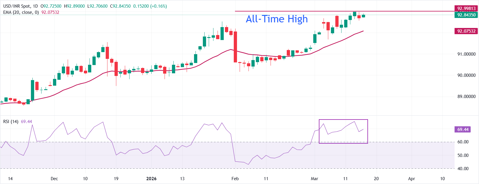 印度卢比(INR)周二兑美元(USD)走低。美元/印度卢比在周一调整后反弹至92.90附近,因印度卢比在外国资金持续流出印度股市的背景下恢复下行趋势。