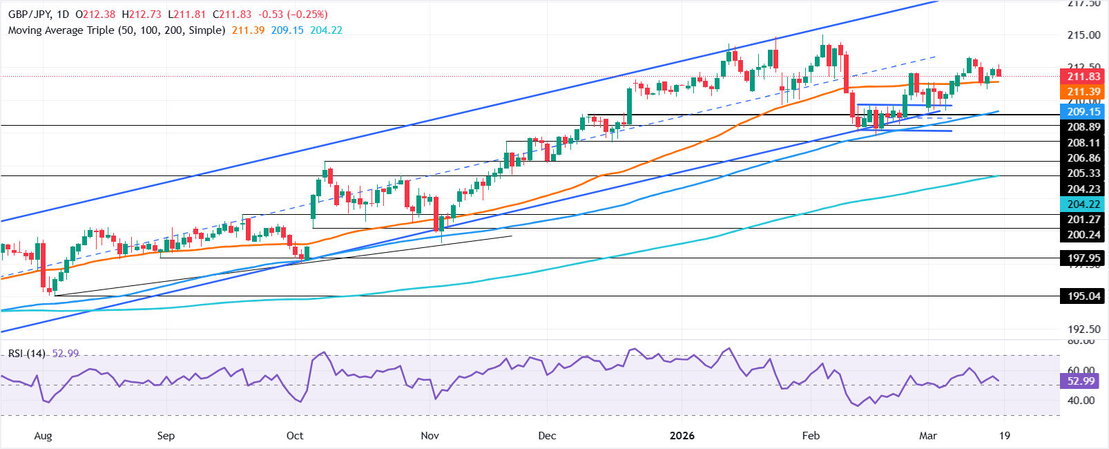 英镑/日元周三下跌0.20%,投资者在等待日本央行周四的货币政策决定。