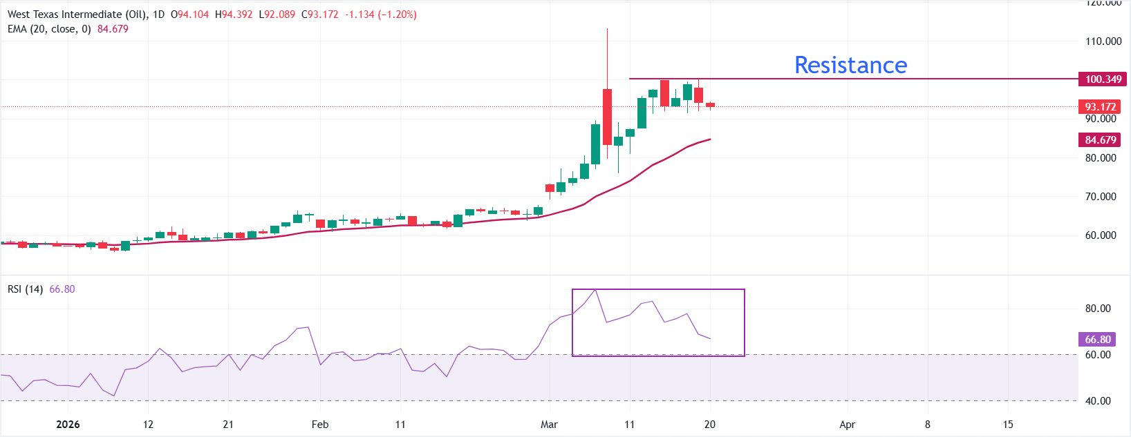 纽约商品交易所(NYMEX)西德克萨斯中质原油(WTI)期货在周五欧洲早盘交易中下跌逾1%,至约93.10美元。由于多起与中东冲突相关的事件缓解了油供应担忧,如以色列承诺不再攻击伊朗石油基础设施以及可能就解除对滞留海上的伊朗石油制裁进行谈判,油价面临抛售压力。